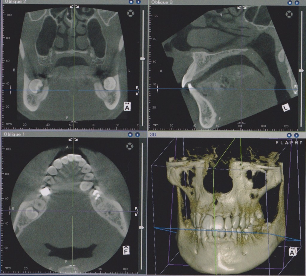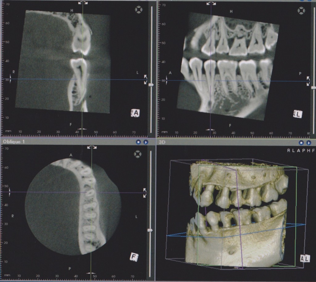 この装置は今までの平面的なレントゲン写真ではなく、立体的に撮影し必要な場所の断面を見ることのできるものです。特に歯の神経の処置や歯周病の治療において歯の周囲の顎骨の様子が手に取るようにわかり、確実な診断の助けになります。