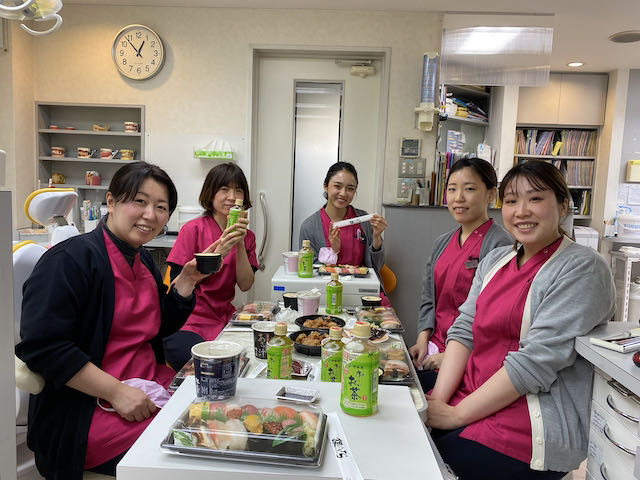 今年の忘年会も昨年に続いて院内での食事会になりました。出前のお寿司を皆んなで美味しくいただきました。あー、、街へ食べに出かけたいなあ。