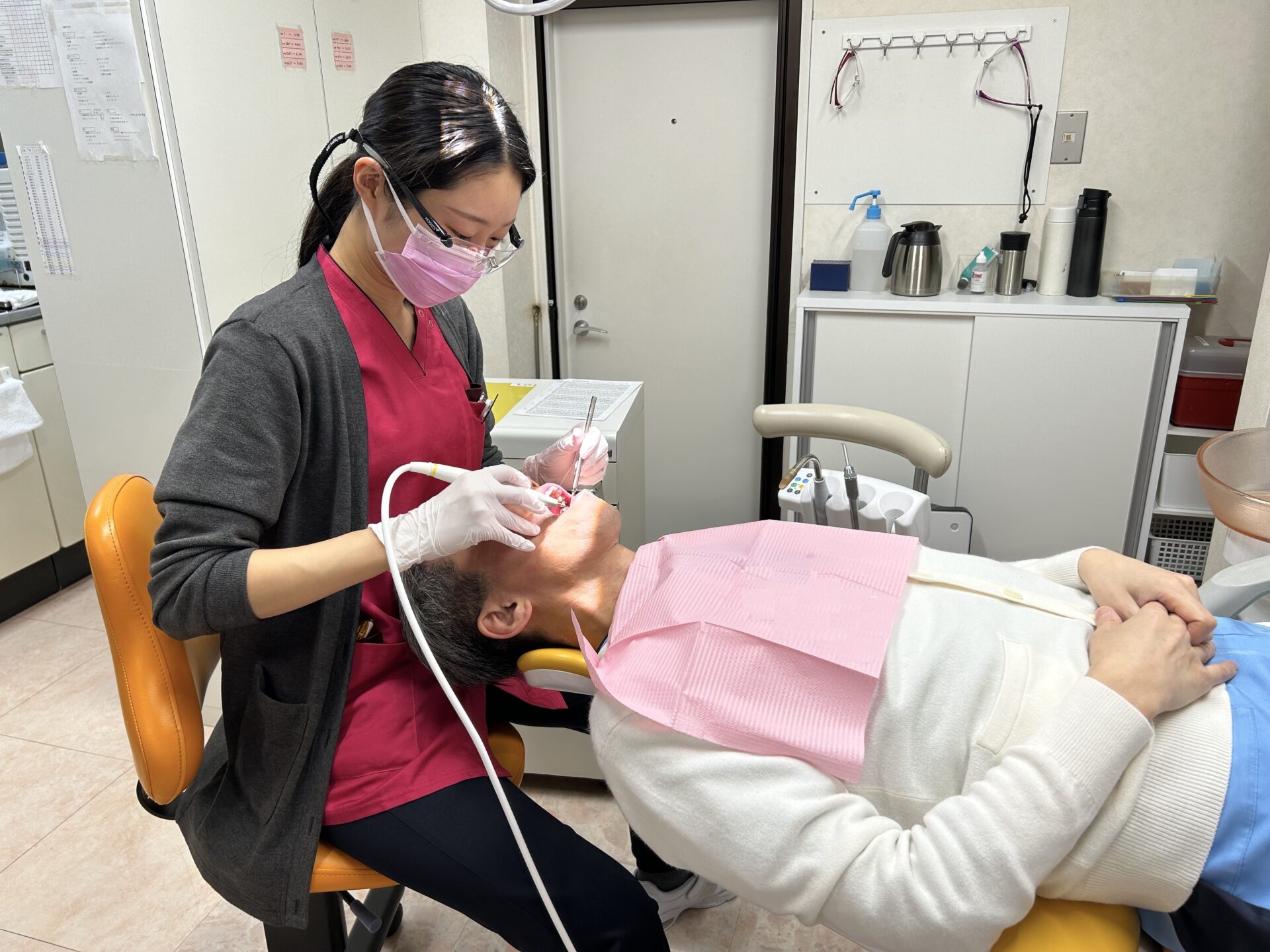 先日、6ヶ月ごとの「相互メンテナンス」を行いました。その日は午前の診療を早めに切り上げ、衛生士達がみんなの口腔内メンテナンスを手分けして行ってくれます。